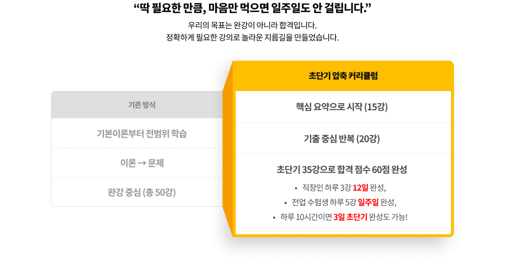 초단기 합격을 위한 특별한 압축 커리큘럼 합격하고 싶다면 지금 바로 시작하세요